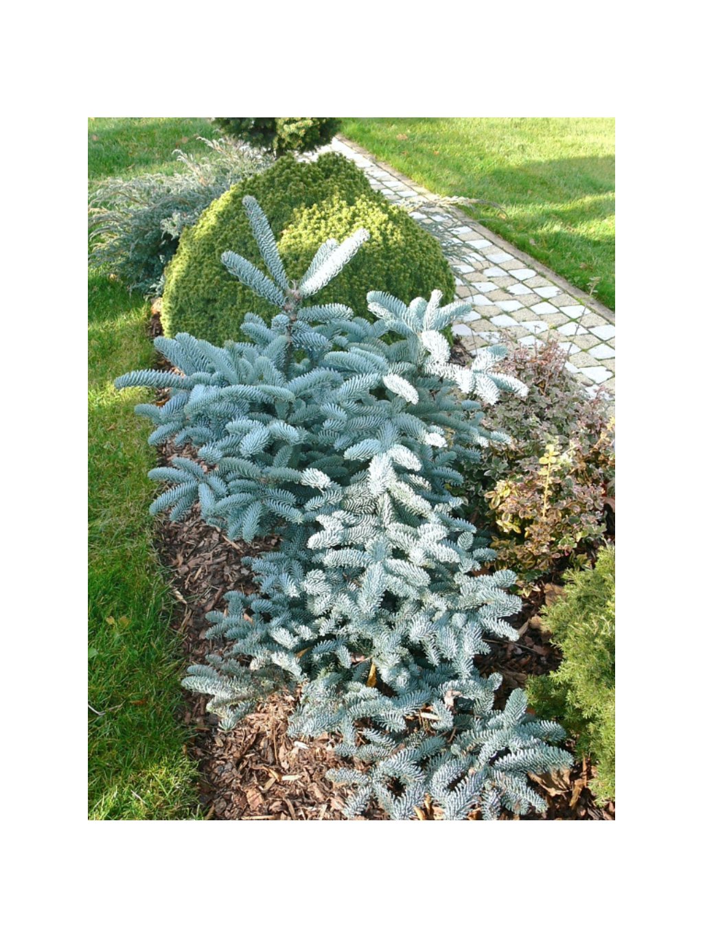 Jedle vznešená 'Glauca' - poměrně pomalu rostoucí jehličnan, který dosahuje do výšky 5 - 10 m, při šířce okolo 2,5 - 4 m, dle podmínek pěstování. V mládí má úzce pyramidální tvar, později se rozrůstá do široké pyramidy. Kůra je zpočátku hladká, stříbřitě šedá, jak strom stárne, kůra zdrsní a zbarví se do červeno hnědých odstínů. Mladé větve jsou oranžově hnědé, později vybarvení přechází do tmavě červeno hnědých tónů. Jehlice mají svrchu i zespodu intenzivní modrošedou barvu, jsou ojíněné, na délku mají zhruba 3,5 cm, jsou lehce srpovitě zahnuté směrem vzhůru. Na podzim se objevují velké šišky, mající na délku 14 - 20 cm. Nejprve nesou modro zelenou a později v průběhu října dozrávají do červeno hnědé barvy. Strom se hodí do středně velkých zahrad, kde vynikne jako solitéra. Pěstování: Velmi oblíbený druh jehličnanu, ideální pro slunná i polostinná stanoviště. Vysazujeme do běžných zemin, dobře propustných - jedle nesnáší přemokření, starší rostliny již zvládnou krátkodobé přísušky. Množíme výsevem nebo roubováním. Rostliny jsou zcela mrazuvzdorné.Doplňkové parametry