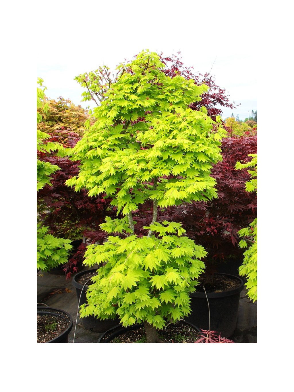 Javor shirasavanský 'Aureum' - velmi atraktivní kultivar, který se vyznačuje nádhernými listy a kompaktním, vzpřímeným tvarem. Dorůstá do výšky okolo 2-3 m. Listy jsou dlanité, poměrně široké a mají nádherný zlatý odstín, který je jednou z hlavních atrakcí této rostliny. Na jaře je jejich zbarvení jasně žluté až zlaté a postupně během léta vybledne do světlejších odstínů zelené. Podzimní barva je obvykle zlatavá až oranžová. Je skvělou volbou pro menší zahrady, kde potřebujete rostlinu s kompaktním růstem, která přesto přitahuje pozornost svou barevností. Tento kultivar se hodí do solitérních výsadeb, kde jeho výrazná žlutá barva vynikne v kontrastu s jinými rostlinami. Je také ideální pro pěstování v nádobách na terasách, verandách nebo balkónech. Pěstování: Preferuje polostinná až stinná stanoviště, kde je chráněn před přímým poledním sluncem. Příliš intenzivní sluneční záření může způsobit popálení jemných listů, zejména v mladších letech. Nejlepší je zajistit místo s rozptýleným světlem nebo s ranním sluncem a odpoledním stínem, aby se zachovala optimální barva a zdraví rostliny. Má rád vlhkou, dobře odvodněnou půdu, která je mírně kyselá až neutrální. Půda by měla být bohatá na organické látky a dobře propustná.Doplňkové parametry