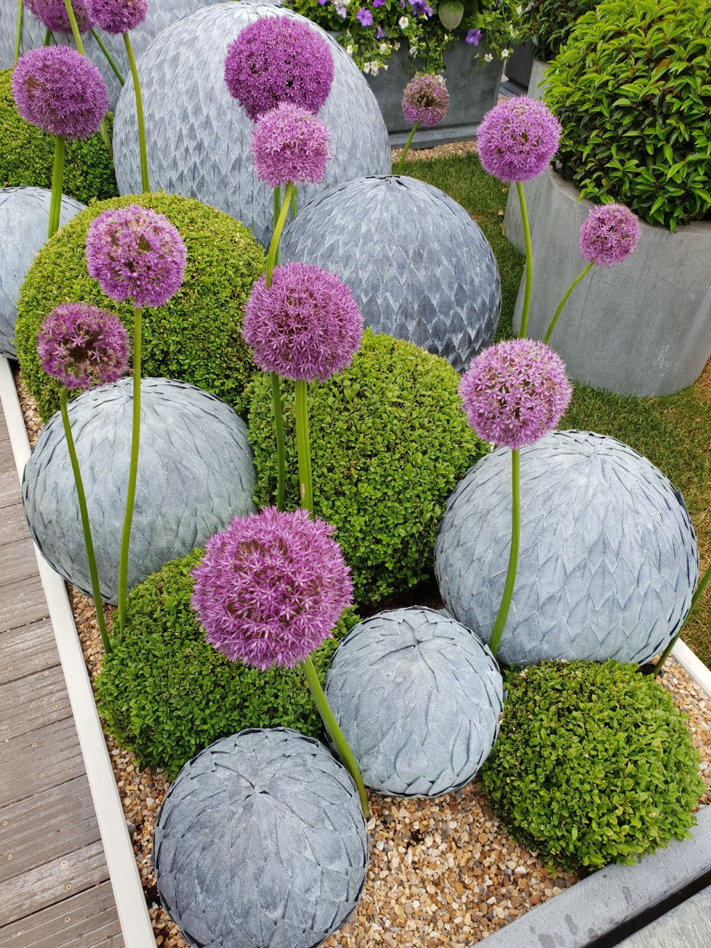 Česnek 'Gladiator' Impozantní a elegantní okrasný česnek, dorůstající výšky 120 až 150 cm. Tvoří výrazná kulovitá květenství o průměru až 15–20 cm, složená z drobných, fialově purpurových kvítků. Kvete během května a června. Silné, vzpřímené stonky dobře drží tvar i ve větru, zatímco úzké zelené listy dodávají rostlině svěží vzhled v období růstu. Květy jsou vhodné k řezu i k sušení a dlouho vydrží ve váze. Allium 'Gladiator' přitahuje včely, čmeláky i motýly, a je tak ideální pro přírodní i okrasné zahrady. Krásně se uplatní ve smíšených trvalkových záhonech, v menších skupinkách i jako solitér. Pěstování: Okrasné česneky jako 'Gladiator' jsou nenáročné na pěstování a velmi dekorativní. Cibule vysazujeme na podzim, ideálně koncem září až začátkem října. Pro výsadbu volíme hloubku přibližně 15–20 cm podle velikosti cibule. Upřednostňuje slunné stanoviště a propustnou, spíše lehčí půdu. Dobře snáší sucho, ale nesnáší přemokření. Doporučuje se nechat cibule na jednom místě několik let, aby mohly plně zesílit. Na zimu je vhodné zakrýt záhon vrstvou chvojí nebo listí jako ochranou před mrazem.Doplňkové parametry