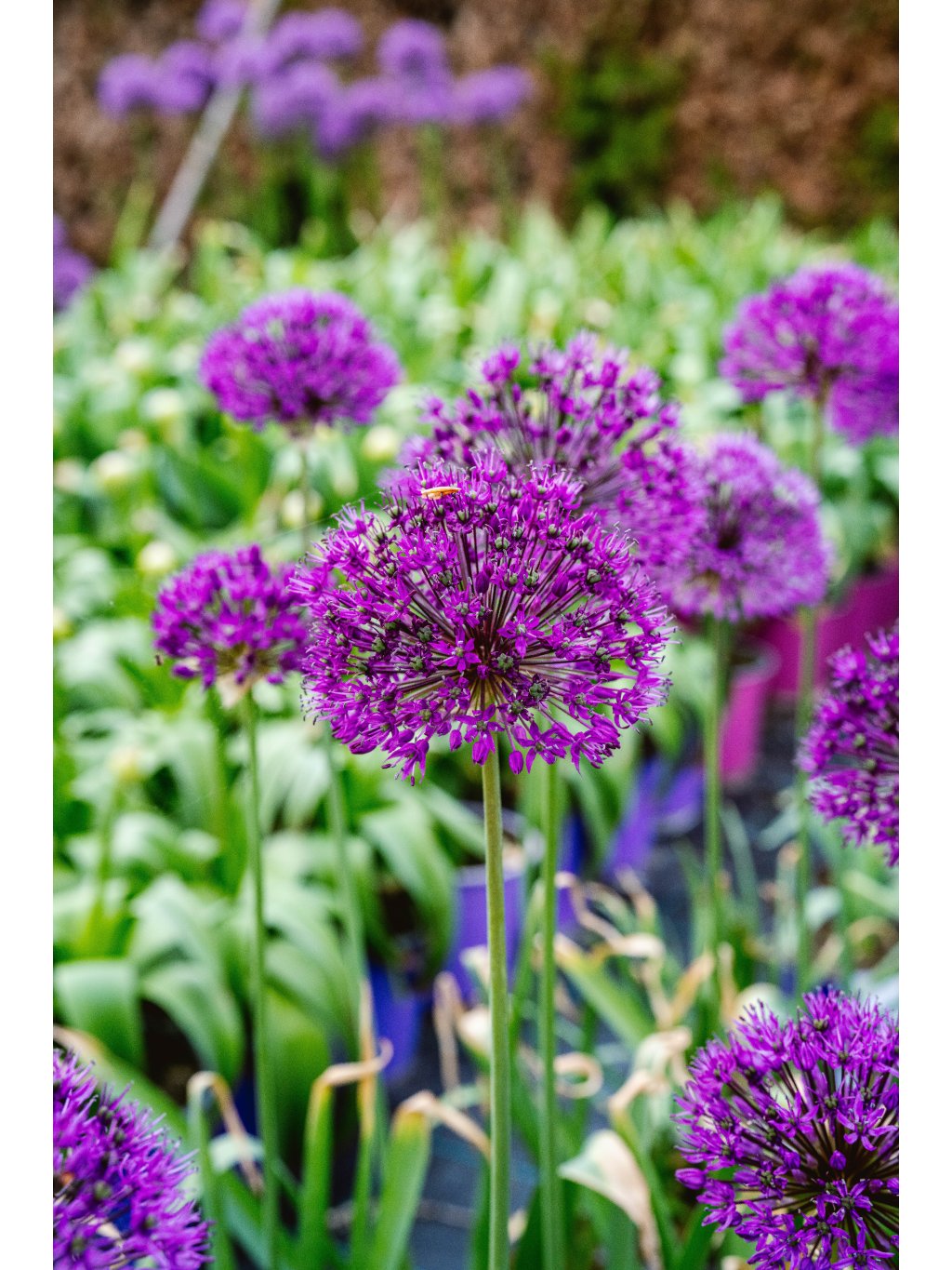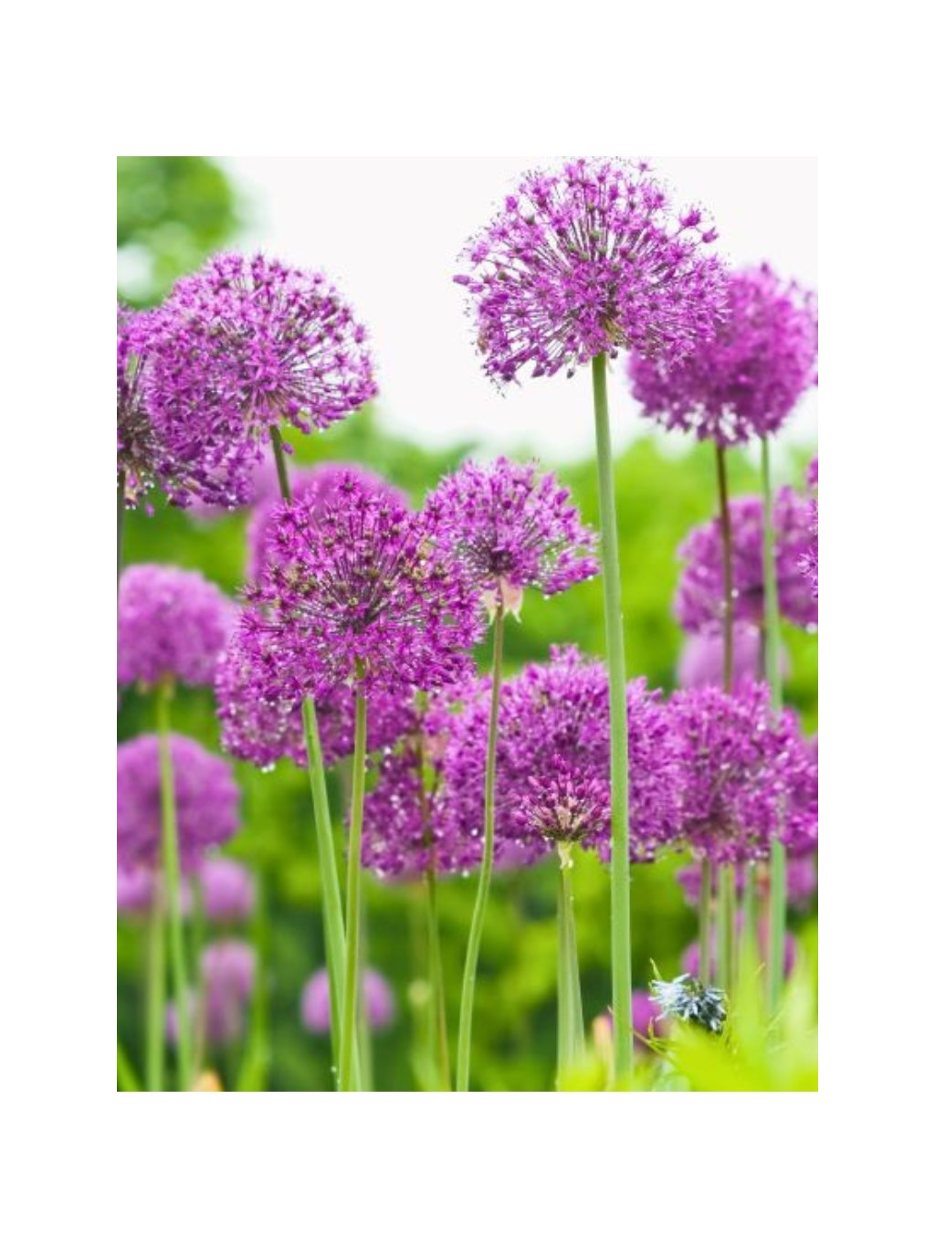 Česnek aflatunský 'Purple Sensation' - velkokvětý česnek, ze kterého oči přecházejí. Dorůstá do výšky okolo 80-100 cm. Květ česneku vyrůstá na dlouhých, holých stoncích, které se tyčí nad listovou růžicí. Nakvétá v květnu až červnu, a to purpurově fialovými květy. Květenství je kulaté a tvořené množstvím drobných kvítků. Trvalka je bohatá na nektar a je velkým lákadlem pro včely a motýly. Hodí se do skupinové výsadby, vynikne v kombinaci s třapatkou, zavinutkou či okrasnou travinou. Ráda se rozrůstá v trvalkových záhonech. Květenství se používá pro suchou vazbu. Je mrazuvzdorný do -40 stupňů. Pěstování: Vyžaduje propustnou, vlhčí, hlinito-písčitou půdu s dostatkem živin. Preferuje plné slunce a hnojení je možné během růstu listů a před začátkem kvetení. Je plně mrazuvzdorný. Žádná část rostliny není jedlá. Vhodný do skalek, solitér, do pozadí skalkových záhonů či bylinných výsadeb.Doplňkové parametry