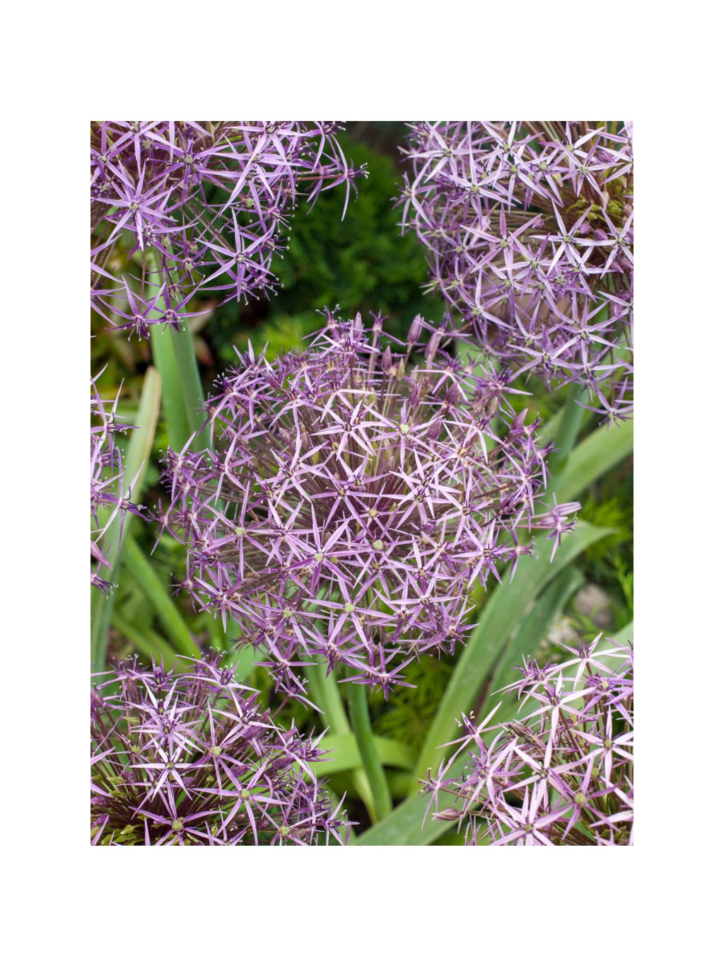 Česnek ozdobný - velmi atraktivní, velkokvětý česnek. Okrasnému česneku Christophii se také říká hvězdicový česnek nebo hvězda Persie, podle tvaru květu a původu. Dorůstá do výšky okolo 60 cm. Vytváří kompaktní trsy plochých, lesklých listů. Listy jsou atraktivní po celé léto. Květ česneku vyrůstá na dlouhých holých stoncích, jež se tyčí nad listovou růžicí. Nakvétá v průběhu května a července modro fialovými, obrovskými květy. Květenství je kulaté, v průměru až 20 cm velké a tvořené množstvím drobných kvítků. Trvalka je bohatá na nektar a je velkým lákadlem pro včely a motýly. Hodí se do skupinové výsadby a dobře se vyjímá v trvalkových záhonech např. s třapatkou, zavinutkou nebo okrasnou trávou. Květy jsou díky dlouhotrvajícímu efektu vhodné i k řezu. Pěstování: Česnek na květinových záhonech působí velmi dekorativně. Koncem září a začátkem října sázíme cibule česneku do země. Drobnější cibule zhruba 8 cm a větší cibule sázíme zhruba 15 cm hluboko. Cibule česneků se potřebují sžít s místem, proto je na jednom místě necháváme minimálně rok, doporučujeme je nepřesazovat. Vyhovuje jim lehčí zem, dobře snášejí sucho. Cibule vysazujeme na slunné stanoviště. Na zimu je samozřejmostí zimní kryt - chvojí či listí v dostatečné vrstvě.Doplňkové parametry