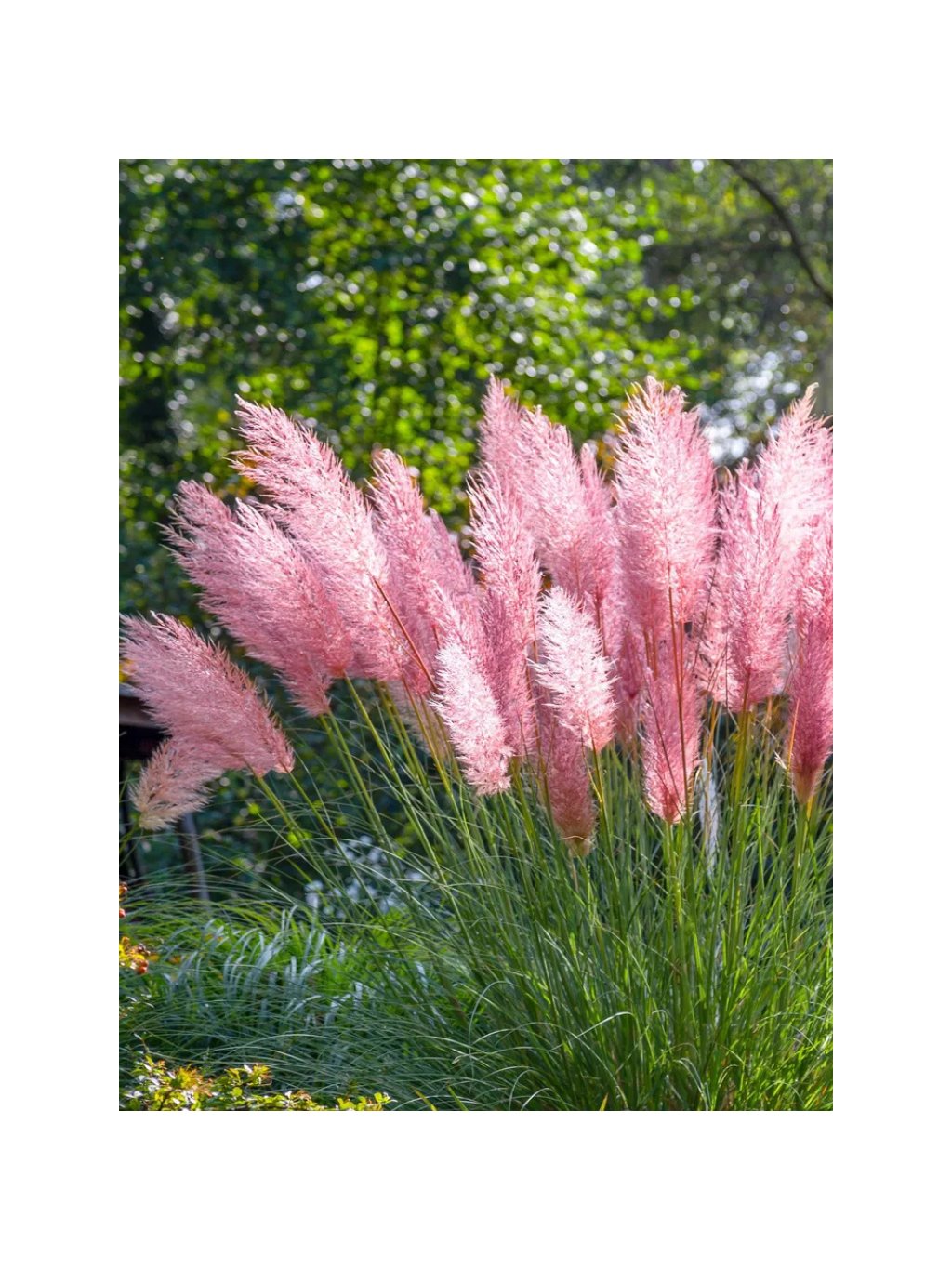 Cortaderia selloana 'Rose Plume' – okouzlující kultivar pampové trávy s jemně růžovými chocholíky, které dodají výsadbám nádech elegance a romantiky. Tvoří husté trsy úzkých, sytě zelených, obloukovitě převislých listů s ostrými okraji. Kvete od srpna do října na pevných, až 200 cm vysokých stvolech. Květenství jsou velká, nadýchaná a zbarvená do jemně růžové, později zesvětlávají do stříbřitě růžového tónu. Jsou velmi dekorativní jak na záhonu, tak ve váze – vhodná i k sušení. Vynikne jako solitér, v kombinaci s trvalkami nebo v moderních zahradách. Pěstování: Vyžaduje slunné, teplé a chráněné stanoviště s lehkou, dobře propustnou půdou. Nesnáší zimní přemokření. V chladnějších oblastech je nutná zimní ochrana – svázání trsů a přikrytí kořenové oblasti chvojím nebo suchým listím. Na jaře se suché listy seříznou nízko nad zemí. 'Rose Plume' je kultivar středního vzrůstu, nenáročný, ale velmi efektní. Mrazuvzdornost se pohybuje kolem -15 °C – v méně příznivých podmínkách se doporučuje pěstovat na chráněných místech.Doplňkové parametry