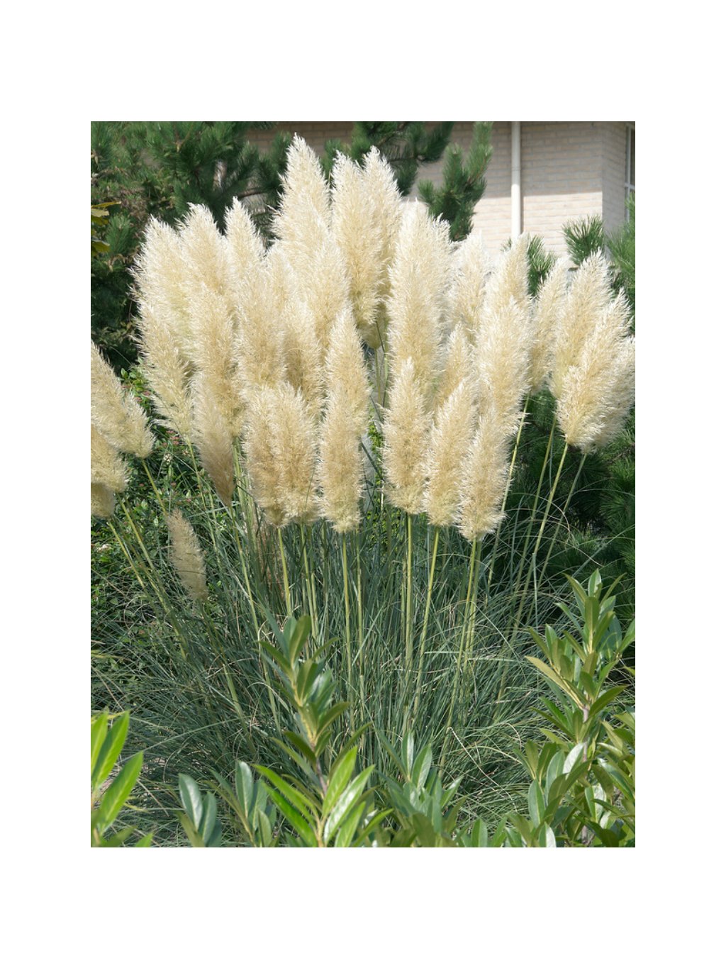 Cortaderia selloana – pampová tráva je působivá, mohutná okrasná tráva původem z Jižní Ameriky, známá svými nápadnými, hedvábně lesklými květenstvími. Tvoří husté trsy úzkých, převislých listů s ostrými okraji, které mohou dorůstat výšky 1–2 metrů. Od srpna do října vyrůstají z trsu vysoké laty květů na tuhých, až 250 cm vysokých stvolech. Květenství jsou stříbřitě bílá až lehce narůžovělá, velmi dekorativní a vhodná i k sušení. Skvěle vynikne jako solitéra, ve skupinové výsadbě nebo v moderních a přírodně laděných zahradách. Pěstování: Vyžaduje slunné, chráněné stanoviště s lehkou, dobře propustnou půdou. Nesnáší přemokření, zejména v zimním období. V tuhých zimách může být choulostivá – doporučuje se zimní ochrana: svázání trsů a přikrytí základny suchým listím či chvojím. Řez se provádí brzy na jaře, kdy se staré listy seříznou těsně nad zemí. Dochán je nenáročná, ale teplomilná trvalka, která se za dobrých podmínek odmění velkolepým vzhledem.Doplňkové parametry
