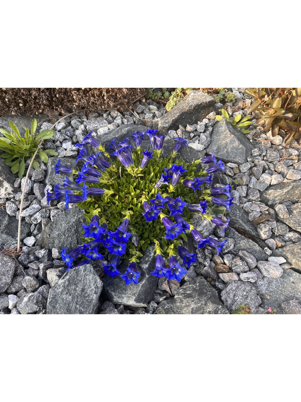 Nízký, kompaktní, stálezelený skalničkový druh, který vyniká svými sytě modrými nálevkovitými květy. Tyto květy se objevují nejčastěji od dubna do června a mají výrazné tmavší proužky uvnitř, což z nich činí opravdový klenot skalek a alpinárií. Květy jsou velké, nápadné a často obrácené vzhůru, vyrůstají jednotlivě z růžic lesklých, tmavě zelených listů. Rostlina tvoří nízké koberečky, které dorůstají výšky pouze kolem 5–10 cm, a šířky do 20–30 cm. Je skvělá pro výsadbu mezi kameny, na okraje záhonů nebo do nádob. Pěstování: Gentiana acaulis má ráda slunné až lehce zastíněné stanoviště a vlhké, humózní, dobře propustné půdy s mírně kyselým pH. Vyžaduje pravidelnou zálivku, ale nesnáší přemokření – dobrá drenáž je proto nezbytná. Nejlépe se mu daří v chladnějších oblastech, je plně mrazuvzdorný a velmi odolný vůči nepříznivým podmínkám. Je ideální pro skalky, alpinária, štěrkové záhony a menší nádoby, kde krásně vynikne díky svému kontrastu mezi sytě modrým květem a tmavým listem. Doporučuje se nepřesazovat příliš často – hořec má rád klidné místo a stabilní podmínky.Doplňkové parametry