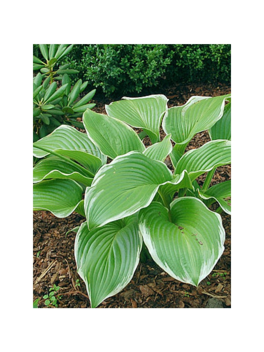 Bohyška 'Lakeside Swan Pond' (Hosta 'Lakeside Swan Pond') Působivá a elegantní trvalka s kontrastně panašovanými listy, která vnese do zahrady svěžest a jemnost. Její listy jsou oválně srdčité, středně zelené, s nápadným širokým krémově bílým lemem, který dodává rostlině vzdušný vzhled. Povrch listů je lehce lesklý, s jemnou žilnatinou a hladkým okrajem. Rostlina tvoří kompaktní, pravidelné trsy a dorůstá výšky okolo 35–45 cm, šířky asi 60 cm. V letních měsících (červenec–srpen) vykvétá světle levandulovými květy, které se tyčí na pevných stvolech nad listovou růžici. Pěstování: Hosta 'Lakeside Swan Pond' je spolehlivá a nenáročná trvalka vhodná pro polostín až stín, kde nejlépe vynikne kontrastní zbarvení listů. Miluje vlhké, humózní a dobře propustné půdy, nesnáší však trvalé přemokření ani dlouhodobé sucho. Plně mrazuvzdorná, dlouhověká a vhodná jak do klasických výsadeb pod stromy, tak do kombinovaných záhonů s jinými trvalkami či do větších nádob. Krásně se doplňuje s kapradinami, dlužichami, čechravami nebo tmavolistými hostami.Doplňkové parametry