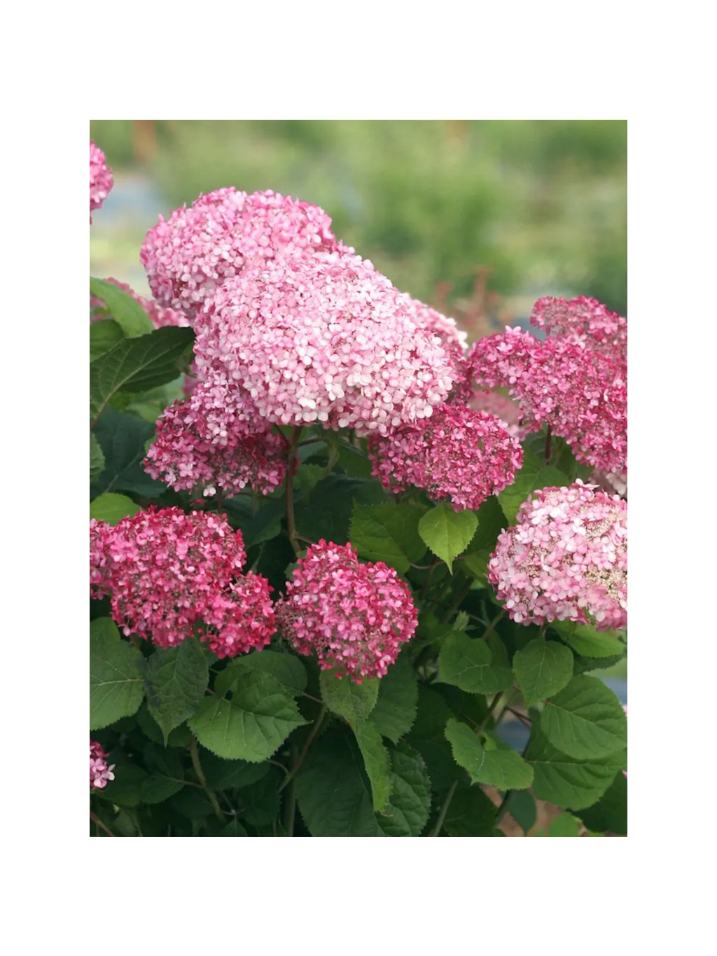Hortenzie stromečkovitá 'Pink Annabelle' - středně velký keř, který se pyšní svým nádherným květenstvím. V dospělosti dorůstá do výšky 50-150 cm, a stejné šířky. Je naprostou raritou mezi stromečkovitými hortenziemi svými ojedinělými, růžovými květy. Kvete od srpna do září. Na vlhčí stanoviště. Opadavé listy jsou velké, vejčité, spíše matné a mají středně zelenou až tmavou barvu. Splní úlohu solitéry v jakékoliv zahradě a skvěle vynikne ve skupinové výsadbě se zelenými rostlinami. Je vhodná pro pěstování v nádobě. Hortenzie stromečkovitá je opadavý keř, který pochází z východních oblastí Severní Ameriky, konkrétně z východních částí USA. Tato rostlina preferuje chladnější oblasti, kde roste převážně na okrajích lesů nebo v křovinách. Rostliny dávají přednost polostinnému stanovišti s trvale vlhkou, mírně kyselou, výživnou půdou s dostatkem rozkládající se organické hmoty. Polokulovitý, hustě větvený keř dorůstá výšky kolem 1 až 1,5 m a rozprostírá se do šířky podobného rozměru. Má výrazné listy, které bývají obvykle velké až 15 cm na délku, mají hrubou texturu a jsou střídavého uspořádání. Květy jsou charakteristické svým kulatým tvarem a bílou barvou. Tyčí se vzhůru bílé či nazelenalé květy. Tyto květy tvoří malé polokulovité shluky o velikosti mezi 5 a 15 cm a skládají se z obdivuhodného počtu květů, obvykle od 100 do 500. Okraj květenství je často ozdoben několika neplodnými květy, ale v některých případech mohou být všechny květy neplodné, což vede ke vzniku impozantních květenství až o průměru 20 cm. Na rozdíl od plodných květů mají neplodné květy výrazně větší kalich a korunní lístky jsou zmenšené nebo zcela chybí, což je činí méně lákavými pro hmyz. Plodné květy poskytují svůj okouzlující vzhled pouze krátce během kvetení, zatímco neplodné květy zůstávají atraktivní mnohem déle, tvoříce tak výraznou část této rostliny. Je odolná a snadno pěstitelná, ale vyžaduje dobře propustnou půdu a pravidelné zalévání, zejména v horkých letních dnech. Její květy mohou být sušeny pro aranžování nebo vytváření dekorativních věnců. Pěstování: Jedná se o listnaté, opadavé keře, pocházející z Japonska, dorůstající do výšky cca 50cm-3m (záleží na jednotlivých kultivarech). Jsou atraktivní díky barevné škále květů, které tvoří plochý, půlkulovitý nebo kulovitý tvar. Co se týče barevnosti květů, je důležitá půdní reakce. V zásaditých půdách se zbarvují do růžova, v kyselých naopak do modra. Kvete v průběhu od července do září. Vysazujeme ji nejlépe do směsi rašeliny, substrátu a kompostu. Preferují slunné stanoviště, nicméně bez přímého slunečního úpalu, snesou i polostín. Mladší rostliny je třeba chránit před zimními mrazíky, starší jsou mrazuvzdorné i do -34°C. Starší rostliny lze tvarovat řezem a udržovat je tak v menší výšce. Hnojíme hnojivy speciálně určené na hortenzie, rozlišené dle požadované barvy květu.