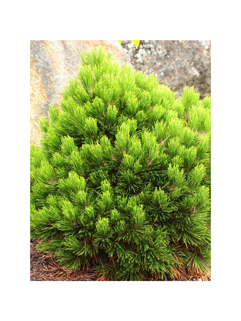 Borovice bělokorá 'Schmidtii' - zakrslý kultivar dorůstající výšky 0,5 m - 1 m. Roste velmi pomalu, roční přírůstky jsou jen okolo 2,5 cm. Habitus je velmi hustý, tvar ploše kulovitý. Jehlice jsou krátké, ostré, tmavě zelené barvy. Nové přírůstky mají bílé zbarvení a rostou ve svazečcích po dvou. Stanoviště by měla mít slunné, se sušší, dobře propustnou půdou. Je mrazuvzdorná. Výborné uplatnění nachází v malých zahradách, ve vřesovištích nebo na skalkách či nádobách. Pěstování: Borovice jsou nenáročné jehličnany. Díky svým hluboce kořenícím kořenům jsou vhodné i na větrná místa. Barva jehlic je dána druhem, šišky jsou kuželovitého tvaru - po dozrání se otevírají a ihned odpadnou. Růst můžeme omezovat vyštipováním 2/3 nových svící (výhonů). Vysazujeme na sušší stanoviště, s dostatkem světla (mladé borovice nesnesou příliš slunce a je potřeba je chránit), půda by měla být spíše písčito-hlinitá. Po výsadbě úměrně zaléváme, udržujeme substrát vlhký, ale nepřemokřený.Doplňkové parametry