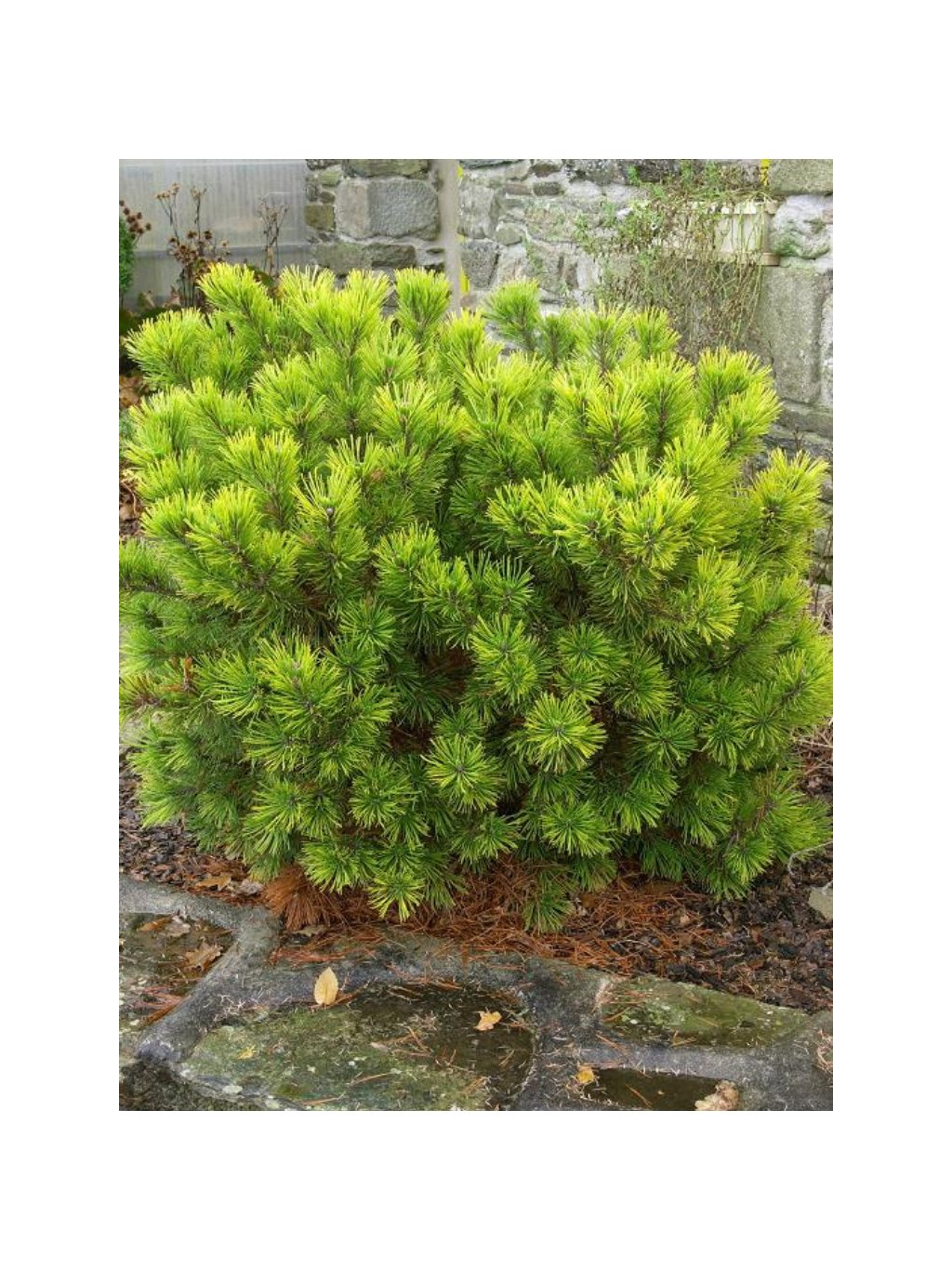 Borovice kleč 'Wintergold' - velmi atraktivní kompaktně rostoucí jehličnan, jehož tvar je spíše nízký a polštářovitý. Dorůstá do výšky kolem 50 - 150 cm a šířky okolo 80 - 200 cm, dle podmínek pěstování. Roste velmi pomalu a s přibývajícím věkem přirozeně houstne. Jehlice má zelené se zlatavým vybarvením špiček, vybarvení je velmi intenzivní v průběhu zimy. Ideální do stálezelených skupin stejně jako solitéra do větší skalky. Doporučujeme vysazovat na slunná nebo málo stinná místa. Není náročný na pěstování a je vysoce odolný vůči mrazu a povětrnostním podmínkám. Celkově je borovice hezkým prvkem do zahrad, přinese kousek lesa i do vaší zahrady. Borovice kleč - Pinus mugo je jehličnatý keř řidčeji křovitého vzrůstu, bez hlavního kořene. Dorůstá do výšky 1-2 m a vyskytuje se převážně v horských oblastech nad horní hranicí lesa, popř. v nižších polohách na rašeliništích či vrchovištích. Často mívá bizardní tvary získané neustálým větrem z jedné strany. V zahradních podmínkách roste hustě a pravidelně a patří k nejodolnějším zahradním borovicím. V přírodě často roste na skalnatých, písčitých místech, přestože potřebuje ke zdravému růstu dost vody. K tomu jí slouží dlouhé kořeny, které si vodu dokáží najít i v nejnepříznivějších podmínkách. Kromě silně vápenité snáší jakoukoli propustnou půdu. Plně otužilá, velmi houževnatá menší borovička, nachází řadu uplatnění ve výsadbách do zahrad a městské zeleně. Pěstování: Borovice jsou nenáročné jehličnany. Díky svým hluboce kořenícím kořenům jsou vhodné i na větrná místa. Barva jehlic je dána druhem, šišky jsou kuželovitého tvaru - po dozrání se otevírají a ihned odpadnou. Růst můžeme omezovat vyštipováním 2/3 nových svící (výhonů). Vysazujeme na sušší stanoviště, s dostatkem světla (mladé borovice nesnesou příliš slunce a je potřeba je chránit), půda by měla být spíše písčito-hlinitá. Po výsadbě úměrně zaléváme, udržujeme substrát vlhký, ale nepřemokřený.Doplňkové parametry