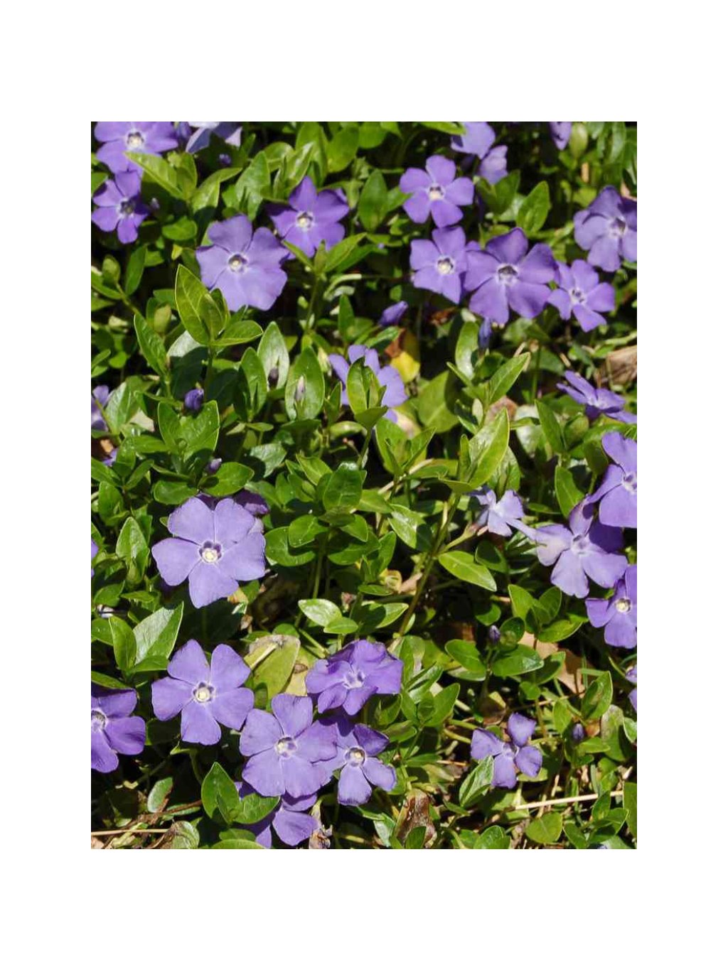 Vinca minor – půdopokryvná, stálezelená trvalka známá pod českým názvem barvínek menší. Tato nenáročná a velmi oblíbená rostlina vytváří husté koberce lesklých, tmavě zelených listů, které zůstávají dekorativní po celý rok. Na jaře, zpravidla od dubna do června, kvete množstvím drobných, pětičetných květů typické modrofialové barvy. Květy se objevují i sporadicky během léta a podzimu. Dorůstá výšky 10–15 cm a šíří se pomocí nadzemních plazivých výhonů, které snadno zakořeňují. Je ideální do stínu a polostínu, pod keře, stromy, na okraje záhonů nebo svahy, které spolehlivě pokryje a zabrání růstu plevelů. Pěstování: Vinca minor nejlépe prospívá na polostinném až stinném stanovišti, ale snese i slunce, pokud má dostatek vláhy. Vyhovuje jí humózní, dobře propustná a mírně vlhká půda, ale je velmi přizpůsobivá a snese i horší půdní podmínky. Po zakořenění je poměrně odolná vůči suchu. Není náročná na údržbu, v případě potřeby lze výhony zastřihnout pro zahuštění porostu nebo vymezení prostoru. Je plně mrazuvzdorná a dlouhověká. Výborně se hodí jako náhrada trávníku do méně zatěžovaných ploch.Doplňkové parametry