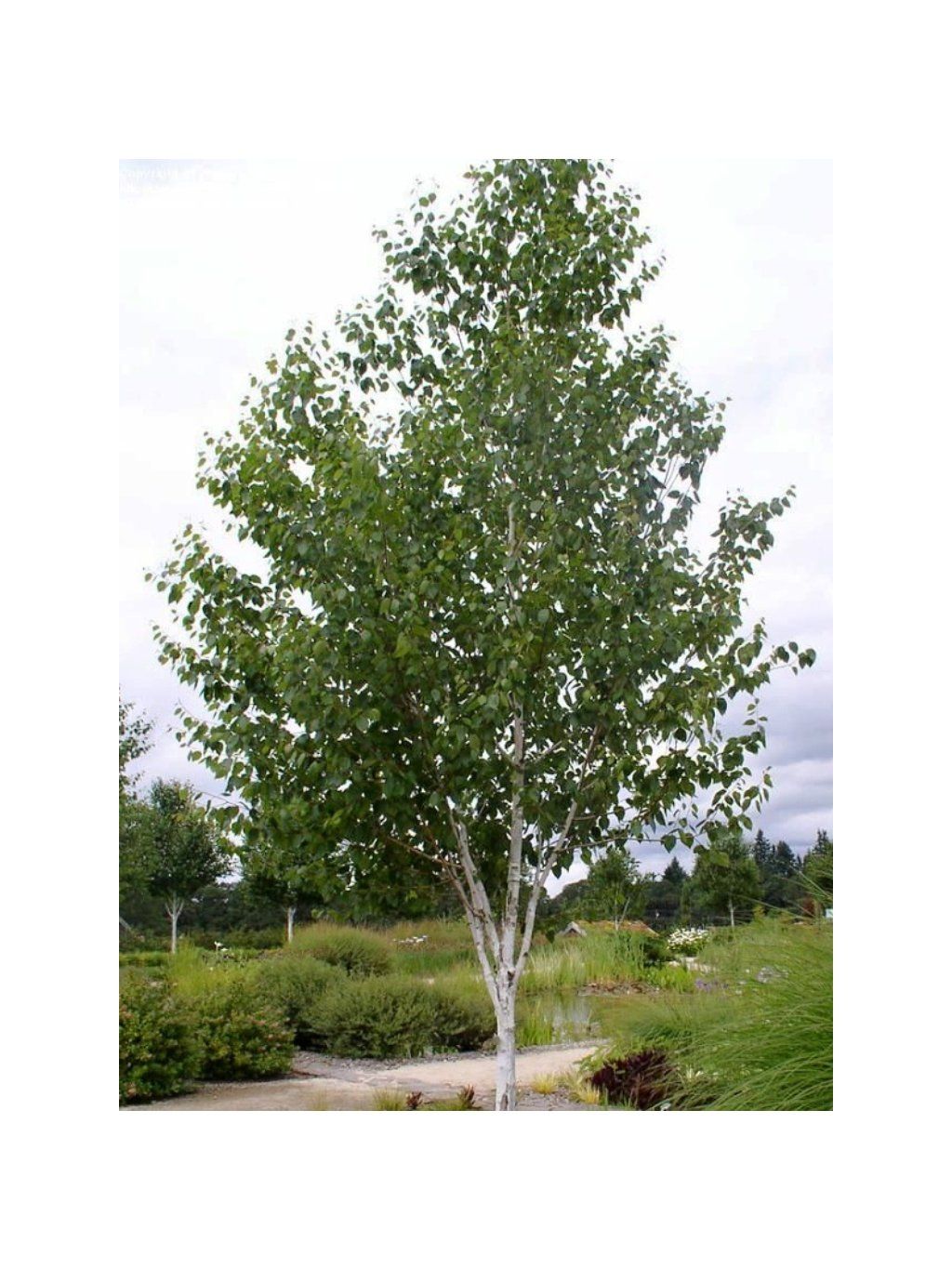 Bříza užitečná 'Doorenbos' - středně vysoký, opadavý strom, dorůstající do výšky 10 m, a šířky 4 - 6 m. Koruna je pravidelně tvarovaná. Dospělý exemplář může dosáhnout až do výšky 20 m. V mládí má kůru krémově bílou, postupně, jak strom stárne, kůra je bělejší a odlupuje se v úzkých proužcích. Mladé větvičky jsou chlupaté a mají červenohnědou barvu. Listy jsou velké, tvarově vejčité a jemně pilovité. Mají sytě zelenou barvu. Na jaře ještě kouzlo tohoto stromu podtrhují žlutohnědé samčí jehnědy. Koření mělce, vyžaduje vlhčí půdy, doporučujeme nevysazovat nic v okolí podrostu. Bříza užitečná je původem z Himálaje a Asie. Je to menší strom dosahující výšky 6-14 m, v nepříznivém klimatu je to jen keř do 3 m. Tento středně velký strom nebo keř se vyznačuje bílými kmeny a nádherně odlupující se kůrou, která tvoří ohromující kontrast v zahradní krajině. Svými oválnými až vejčitými zelenými listy, které na podzim získávají žluté a nazrzlé odstíny, vytváří kulovitou korunu, přinášející do kraje jemnost a eleganci. Bříza preferuje slunečné až polostinné polohy a dobře propustné půdy. Má ráda vlhkost, ale snáší i období sucha. Svým vzhledem zanechává v zahradách dojem dekorativnosti a atraktivity, zejména díky svým bílým kmenům, které jsou v zimním období výrazným prvkem. Vynikne jak solitérně uprostřed zahrady, tak i ve skupinách či v parcích, kde její bílé kmeny vyniknou jako zajímavý designový prvek. Pěstování: Bříza je na pěstování nenáročná, je schopna se přizpůsobit velké škále půd. Nejvíce jí vyhovují mírně vlhké půdy s přídavkem humusu. Po zakořenění snese i krátkodobý přísušek. Volíme stanoviště na slunci až mírném polostínu. Používáme hnojiva s dlouhodobým postupným účinkem. Bez problému snáší řez. Je vhodná jako dominantní solitéra do větších zahrad.Doplňkové parametry