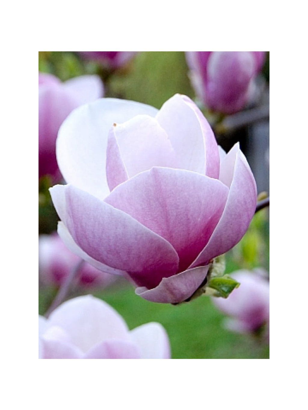 Magnolia soulangiana 'Lennei' – elegantní a atraktivní odrůda magnólie, která je známá svými velkými, jemně růžovými květy s fialovým nádechem. Květy mají pohárkovitý tvar a jsou rozdělené do několika okvětních plátků, které se otevírají na jaře, obvykle v březnu až dubnu, a vytvářejí okouzlující pohled. Tato odrůda dosahuje výšky 4–6 metrů a šířky 3–5 metrů, což ji činí ideální pro středně velké zahrady nebo pro výsadby ve skupinách. Magnolia 'Lennei' se vyznačuje lesklými tmavě zelenými listy, které zůstávají dekorativní i po odkvětu. Pěstování: Magnolia soulangiana 'Lennei' preferuje slunné až polostinné stanoviště a dobře propustnou, humózní, mírně kyselou půdu. Tato magnólie je mrazuvzdorná do cca -20 °C, ale v chladnějších oblastech je doporučeno ji chránit před mrazivými zimami, zejména v prvních letech po výsadbě. Magnolia 'Lennei' si žádá pravidelnou zálivku, zejména během suchých letních měsíců, a nesnáší přemokření půdy. Je ideální pro solitérní výsadbu, kde vynikne svou krásou, ale také pro kombinace s jinými stromy nebo keři v zahradách a parcích. Po odkvětu je doporučeno odstranit odkvetlé květy pro podporu zdravého růstu.Doplňkové parametry